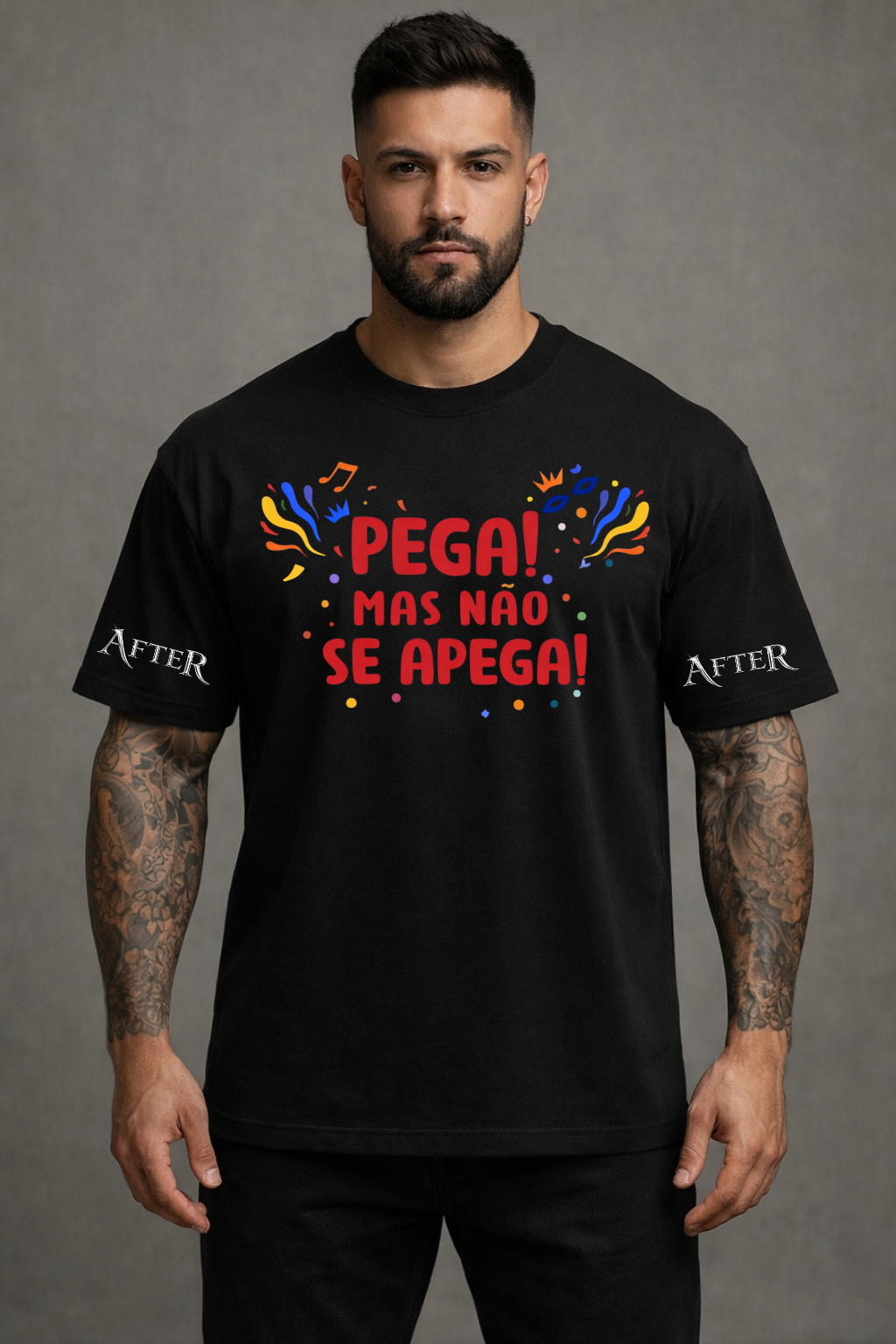 CAMISETA OVERSIZED CARNAVAL FRASES PEGA MAS NÃO SE APEGA
