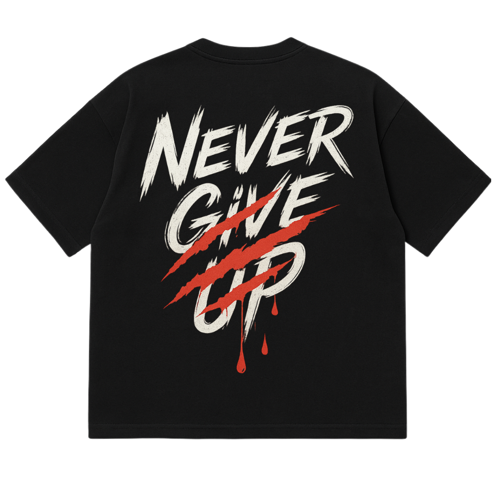 CAMISETA OVERSIZED PRETA AFTER NEVER GIVE UP