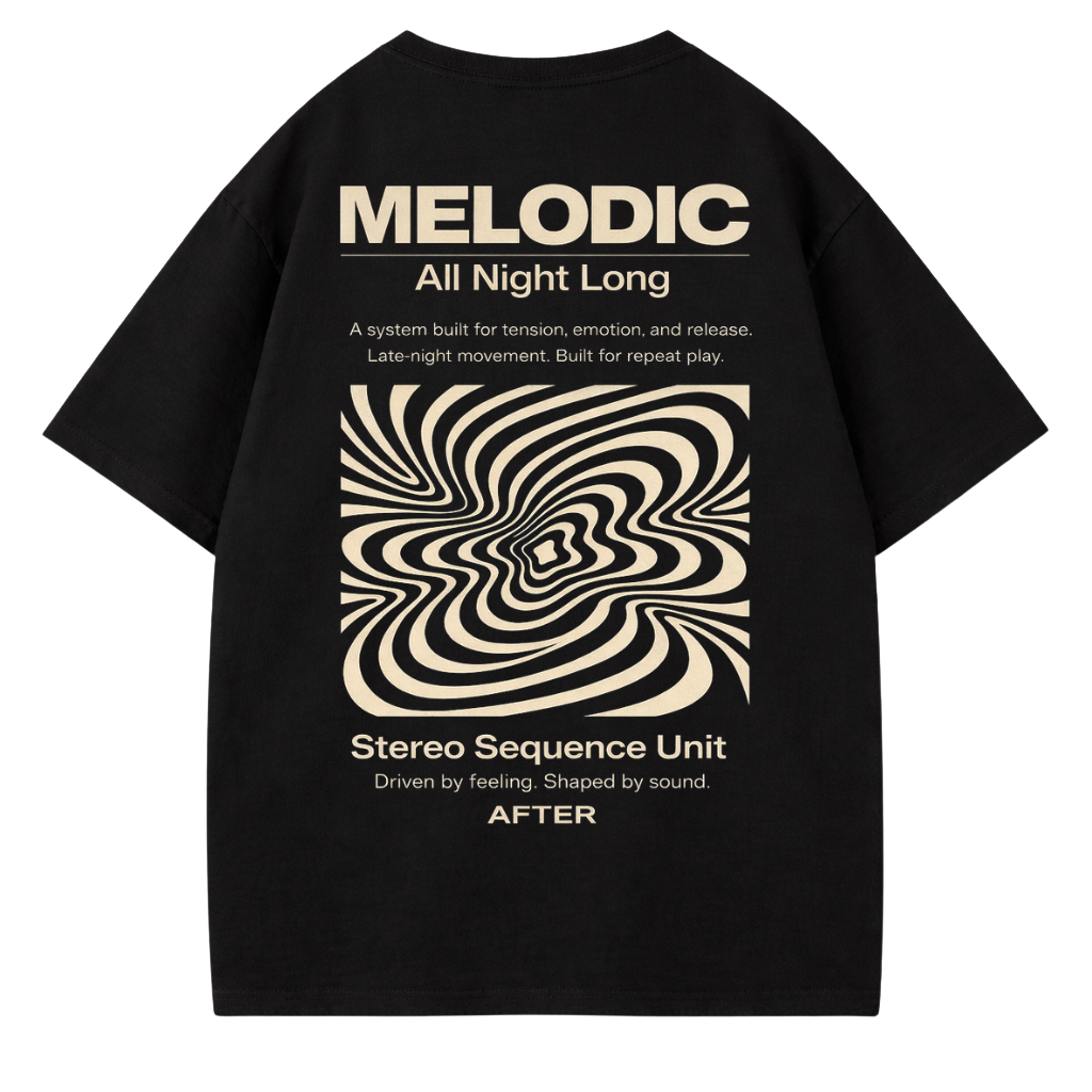CAMISETA OVERSIZED PRETA MELODIC ALL NIGHT LONG AFTER