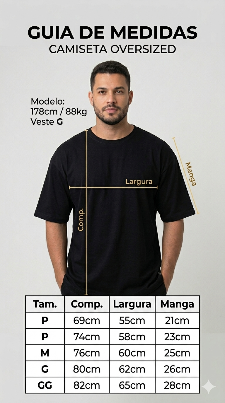 A Camiseta Oversized After foi desenvolvida para quem busca presença visual, conforto e qualidade em uma única peça. Com modelagem ampla, caimento moderno e gramatura robusta de 210 g/m², ela entrega uma proposta versátil, autêntica e alinhada a um padrão premium.