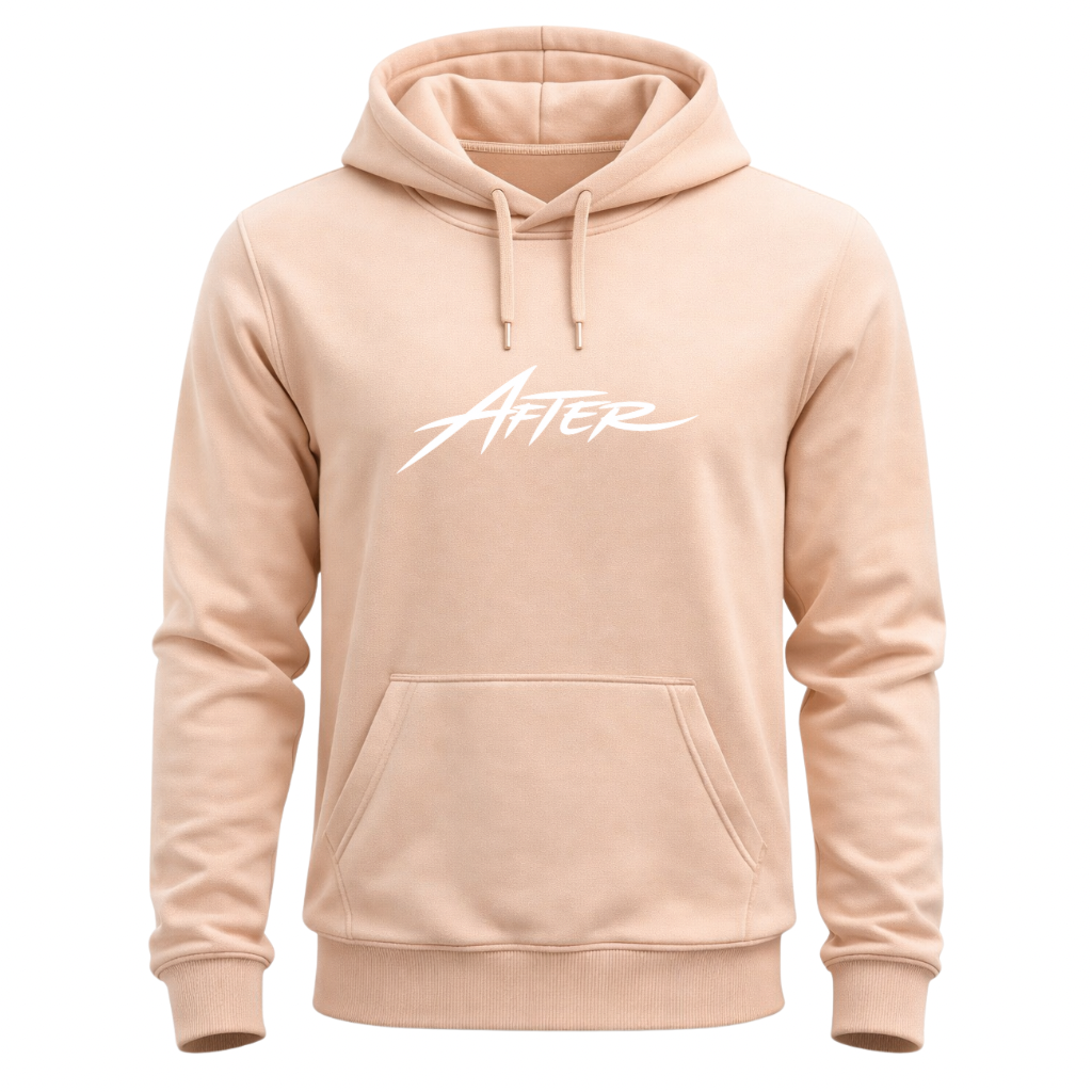 MOLETOM CANGURU BEGE UNISSEX AFTER COM CAPUZ BOLSO FRONTAL ASSINATURE