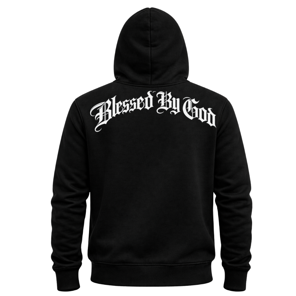 MOLETOM CANGURU PRETO BLESSED BY GOD UNISSEX