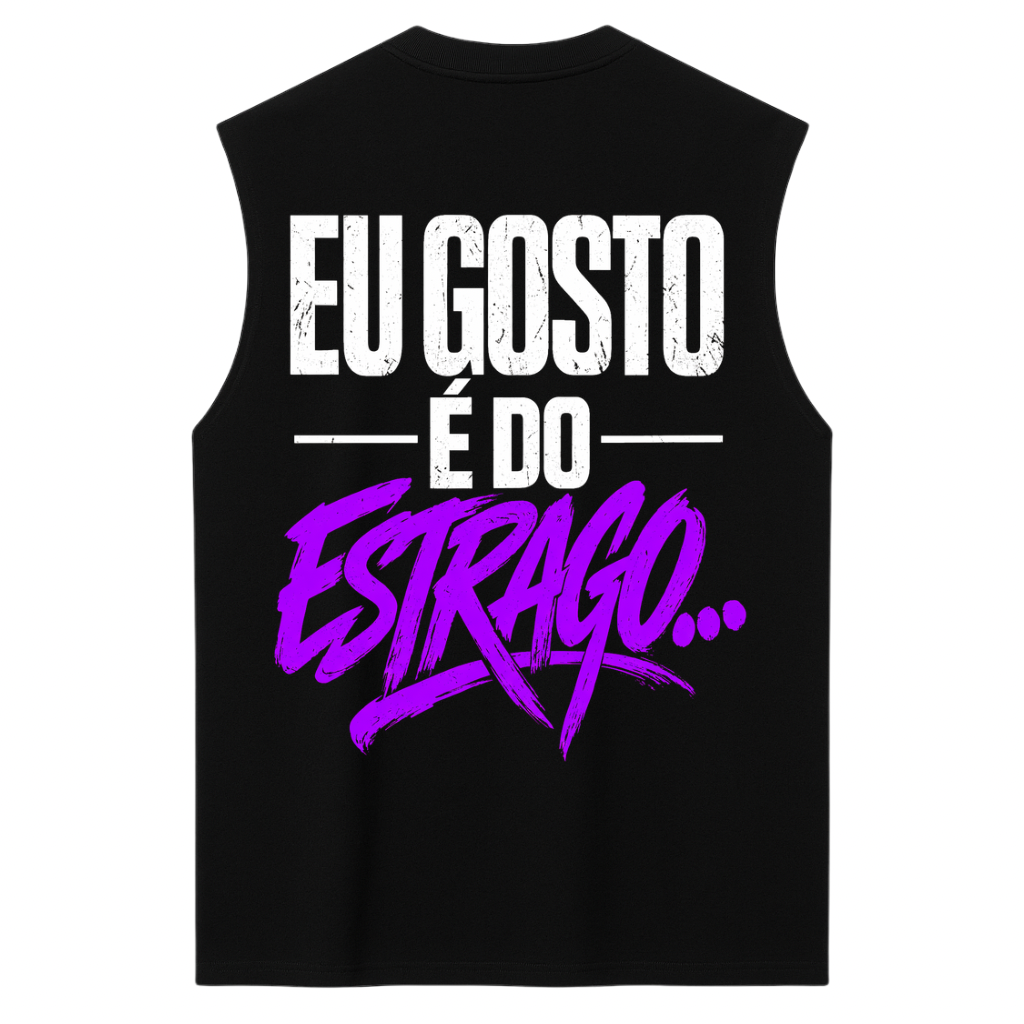O corte a fio nas mangas entrega a estética crua e autêntica do streetwear global, enquanto a modelagem oversized proporciona liberdade de movimento e um visual impactante — ideal para festivais, rolês e o lifestyle noturno.