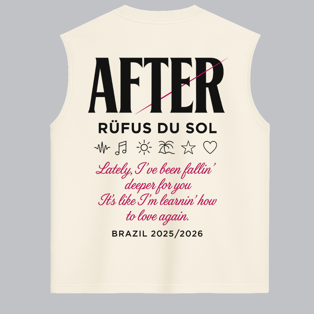 Vista a Regata Oversized After® e entre no ritmo da noite, do street e dos festivais com a confiança de quem veste uma marca feita para durar.